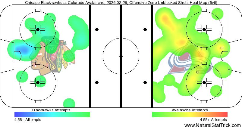 The Avalanche are a much better team than Nashville. So I wouldn't have been surprised to see a total brain bash. The Hawks finished this one with a 35.71 percent shot attempt share and a 40.49 percent expected goals share at 5v5. Bedard had four shot attempts and one shot on goal. Nazar had just the one shot attempt.