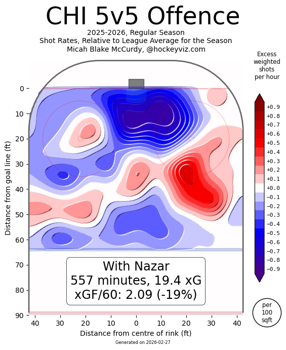 I know, I know. I'm being Mister Negativity following two Bedard goals and a four-goal victory. But the questions being asked of Nazar are worth asking, because with every game that passes and he doesn't prove to be the player Kyle Davidson signed him to an extension for... well, more questions need to be asked. Questions pointed at Davidson.